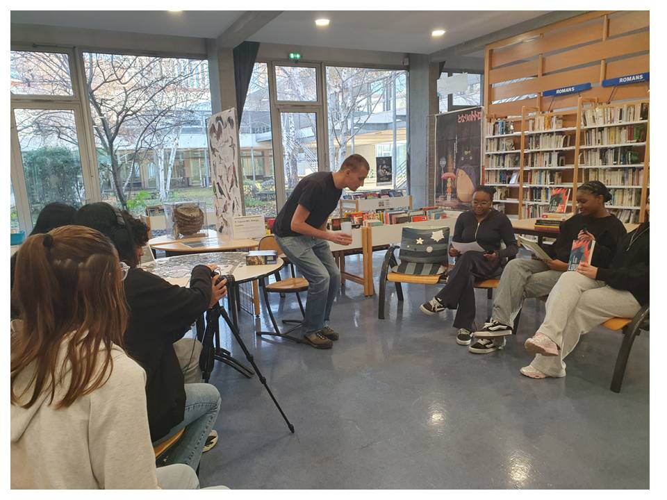 Chaque groupe a ensuite imaginé un scénario original pour présenter son ouvrage sous forme de Booktube : dialogues écrits ou improvisés, mises en scène personnalisées… Avec l’aide de l'intervenat Adam Garner d’Archipel Médiateur, ils ont tourné des vidéos, transformant leurs lectures en une création collective, et le CDI/CDR en studio de cinéma.